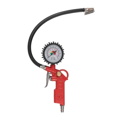 Інструмент здатний за лічені хвилини накачати не тільки шини та камери транспортних засобів, а й надувні човни, м'ячі, круги тощо. Оснащений манометром для контролю тиску, а також клапаном скидання повітря, коли необхідно спустити тиск до потрібного показника. Манометр зі стрілкою та двома шакалами до 10 bar/PSI для зручності зчитування показників.
