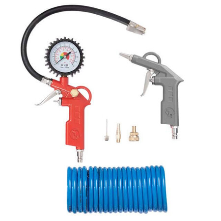 Всі інструменти комплекту оснащені фітингами для швидкороз'ємних з'єднань європейського типу, вони герметичні та дозволяють швидко під’єднати пневмоінструмент до шланга, а шланг - до компресора.