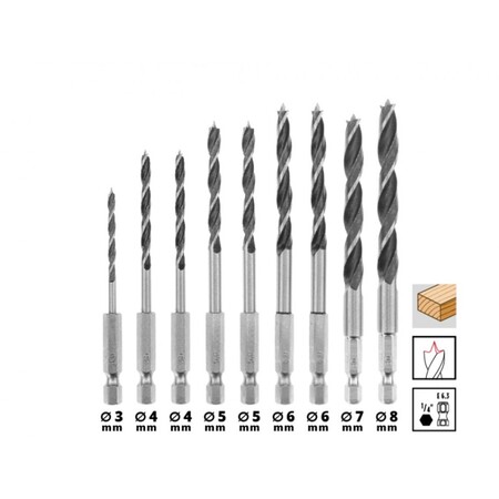 3 мм, 4 мм - 2 шт, 5 мм - 2 шт, 6 мм - 2 шт, 7 мм, 8 мм