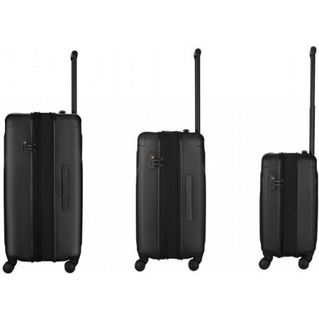 Набір валіз Wenger Oryson 3 в 1 у чорному кольорі - це практичний набір трьох валіз різних розмірів для зручної упаковки речей під час подорожей. Кожна валіза виготовлена з високоякісного пластику і має чотири колеса для легкого переміщення. Чорний колір додає валізам стильний і елегантний вигляд. Цей набір валіз дозволить вам організувати ваші речі для подорожей будь-якої тривалості з комфортом і зручністю.