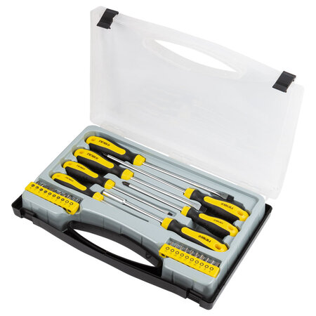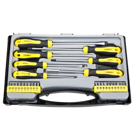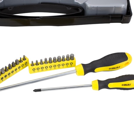 Набір викруток + біт 27шт CrV від Sigma (код 4001061) - це набір інструментів, який включає в себе 27 різних видів викруток та біт. Цей набір зазвичай містить в собі різноманітні типи викруток (крестоподібні, плоскі, Torx тощо) з високоякісної хром-ванадієвої сталі (CrV) для довговічності та міцності. Біти також виготовлені з цього матеріалу та дозволяють замінювати насадки в залежності від потреби. Набір може постачатися в компактному кейсі для зручності зберігання та перенесення. Цей набір інструментів буде відмінним вибором для будь-яких ремонтних, будівельних або монтажних робіт.