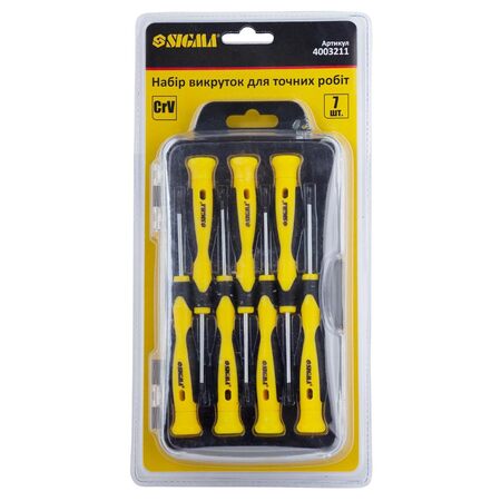 Набір викруток для точних робіт 7шт CrV (пласт кейс) SIGMA (4003211) - для складання або розбирання пристроїв і компонентів невеликого розміру - дрібної домашньої техніки, різноманітних гаджетів, наприклад, годинників або мобільних телефонів, фотоапаратів та портативних комп'ютерів, ноутбуків, планшетів, ігрових приставок та інших видів техніки.