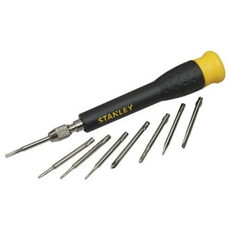 Футляр пластик; Кількість предметів в наборі 9 штук.Набір викруток Stanley для точної механіки з цанговим тримачем STHT0-62629 включає в себе 8 різних видів викруток для використання в точних механічних роботах. Кожна викрутка постачена із змінними насадками та цанговим тримачем для зручності та швидкої заміни насадок. Цей набір інструментів підійде для робіт з електронікою, годинниками, дрібними механізмами та іншими точними деталями. Комплект включає різноманітні види насадок, які допоможуть вам виконати різні види ремонтів та монтажних робіт. Набір викруток Stanley для точної механіки є надійним та якісним інструментом для професіоналів та домашніх майстрів, які потребують високоякісних інструментів для точних механічних робіт.