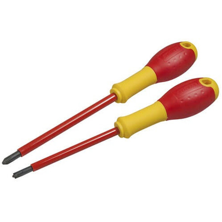Футляр Немає; Кількість предметів в наборі 2 штуки.Набір викруток Stanley "FatMax VDE 1000V" складається з двох викруток, призначених для роботи з електричними системами та обладнанням з напругою до 1000 вольт. Ці викрутки відповідають вимогам безпеки VDE і можуть використовуватися для викручування або закручування гвинтів у електричних проводках та електричних приладах. Вони мають ізольовані рукоятки, що забезпечують захист від електричного удару. Цей набір інструментів від Stanley є надійними та довговічними інструментами для професіоналів, які працюють з електричними системами. Вони можуть бути використані як для роботи в електричних мережах, так і для домашніх потреб з електрикою. Набір "FatMax VDE 1000V" від Stanley - це надійний і безпечний вибір для роботи з електрикою.
