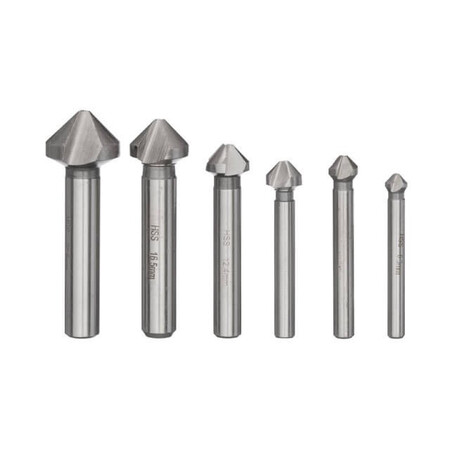 Оптимальне відведення стружки і додавання охолоджувальних рідин у процесі роботи збільшує строк служби інструментів. В комплекті 6 зенкерів: 6.3, 8.3, 10.4, 12.4, 16.5 і 20.5 мм.