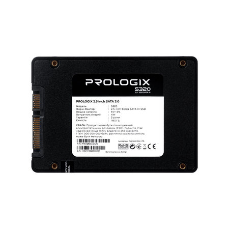 SSD накопичувач Prologix S320 - для тих, хто цінує продуктивність і розумну ціну. Привертає увагу не лише ефективністю, але й надійністю та зручністю використання.