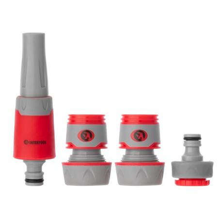 Крім розпилювальної насадки, в комплект включені конектори для шланга 3/4", один конектор з аквастопом для автоматичної зупинки потоку води при від'єднанні насадки, що дуже зручно. Також до комплекту додано адаптер для з'єднання шланга з конектором до джерела води - крану із зовнішньою різьбою 3/4” або 1/2”.