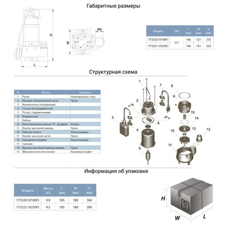 - Корпус: чавун / нержавіюча сталь AISI 304