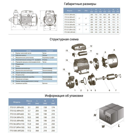 - Робоче колесо: латунь;