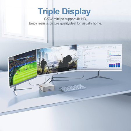 Малий ПК розміром усього 139 х 139 х 47 мм можна легко розмістити на переповнених робочих місцях або в невеликих приміщеннях. Його легко носити з собою, він не займає багато місця й ідеально підходить для ділових поїздок. Acemagician GK3 Pro постачається з VESA кріплення, які ви можете використовувати для кріплення комп’ютера на задній панелі дисплея. Міні ПК має різні інтерфейси (2 x USB 3.0 Type-A порти, 2 x USB 2.0 Type-A порти, 2 x HDMI порти, 1 x Ethernet порти, 1 x 3,5 мм аудіо роз’єм, 1 x DC вхід живлення, 1 * VGA порти), щоб легко задовольнити потреби офісу, бізнесу, домашнього аудіо та відео потреб.