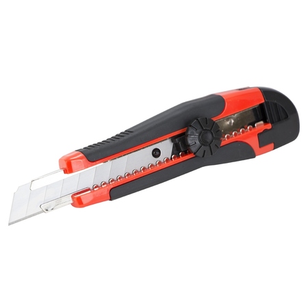Ніж будівельний (пластик / гума корпус) лезо 18мм гвинтовий замок SIGMA (8211101) призначений для розрізання із застосуванням значних зусиль різних матеріалів: килимових покриттів, картону, тканини, паперу.