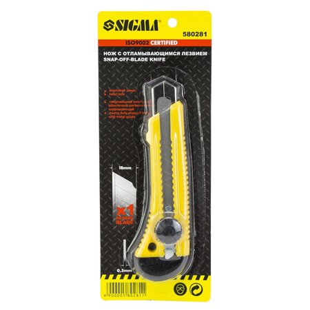 Ніж будівельний (пластиковий корпус) лезо 18мм гвинтовий замок SIGMA (8211141) призначений для розрізання із застосуванням значних зусиль різних матеріалів: килимових покриттів, картону, тканини, паперу.