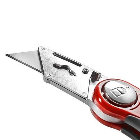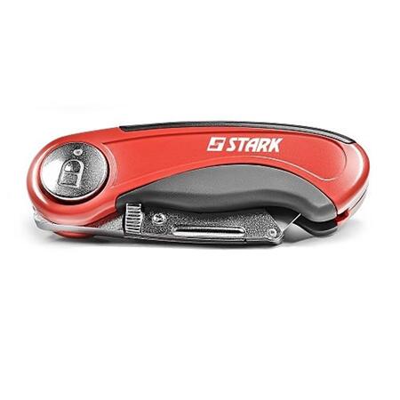 Ніж Stark 168 мм складається для компактного зберігання та безпечного переміщення. Щоб швидко приступити до роботи, досить натиснути на кнопку і ніж буде готовий до експлуатації. Кнопка фіксації забезпечуєш безпеку користувачеві.