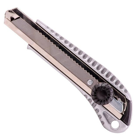 Ніж із 18 мм сегментним лезом, застосовується на будівельних майданчиках, складах, у домашній та в офісній роботі. Без особливих зусиль впорається з монтажною піною, шпалерами, скетчем, плівкою, папером тощо.