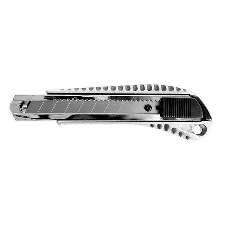 Оснащений повзунком для висування та фіксації леза. Корпус з перфорацією проти ковзання в руках.