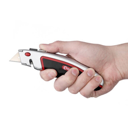 Металевий ніж з трапецієподібним лезом, застосовується на будівлях, складах, а також у домашній та офісній роботі. Без особливих зусиль справляється з гіпсокартоном, лінолеумом, монтажною піною, шпалерами, скотчем, плівкою, папером тощо.