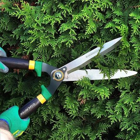 Ножиці для живоплоту GRUNTEK Panthera 640мм/230мм - призначені для професійного застосування. Хвилеподібні леза SK5 з прецизійним заточуванням дозволяють виконувати точні та потужні зрізи навіть з невеликими гілками. Лезо швидко і легко знімається для заточування. З новими ергономічними ручками з ясеню та надійними упорами для зручного різання. Округла форма ручки забезпечує зручне захоплення для маленьких і великих рук. Нахил леза та рукоятки полегшує обрізування країв та гілок у важкодоступних місцях