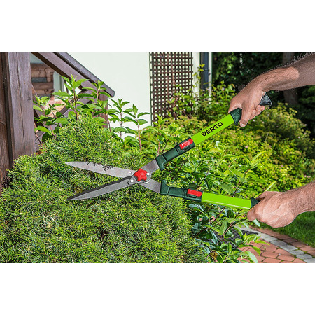 Ножиці для живої огорожі телескопічні Verto 15G312 - це садовий інструмент, який призначений для стрижки та догляду за живою огорожею, деревами, кущами та іншими рослинами в саду або на городній ділянці. Вони мають телескопічні ручки, що дозволяють змінювати довжину інструменту для зручності в роботі. Ножиці обладнані гострими лезами з високоякісної сталі, які дозволяють швидко та просто вирізати чагарники та гілля. Зручні ручки з покриттям забезпечують комфортне утримання під час роботи і запобігають втомленню рук.Ножиці для живої огорожі телескопічні Verto 15G312 допоможуть вам швидко та ефективно доглядати за рослинами в вашому саду чи городі, підтримуючи їх в порядку та формі. Цей інструмент є незамінним для тих, хто піклується про здоров'я та вигляд своїх рослин, а також цінує зручність та якість в своїх садових інструментах. Використовуючи ножиці для живої огорожі телескопічні Verto 15G312, ви зможете легко створити та підтримувати красиву та охайну огорожу або дерево в вашому саду.