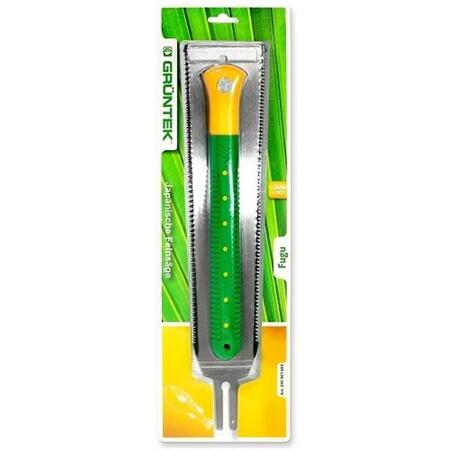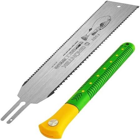 Gruntek FUGU 300 мм - зручна садова пила японського типу з двостороннім лезом для ефективної чистки чагарників, пиляння гілок, розпилювання ДСП і пластику. Крок зубів з одного боку 7 зуб / дюйм з іншого боку 10 зуб / дюйм дозволяють ефективно справлятися з різним типом матеріалу, забезпечуючи грубий різ.