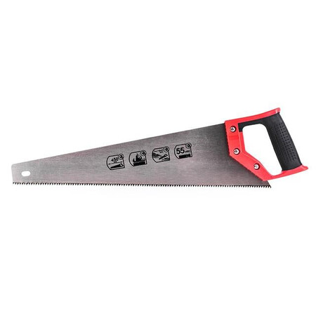 Ножівка по дереву виготовлена із міцної загартованої сталі. Довжина робочої поверхні – 450 мм, цього цілком достатньо для розпилювання гілок або заготовок, діаметром понад 100 мм. Кількість зубців на 1 дюйм робочої довжини полотна - 7. Зубці пили загартовані, зберігають гостроту різального краю та не потребують заточування.