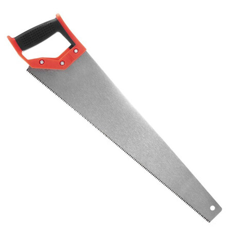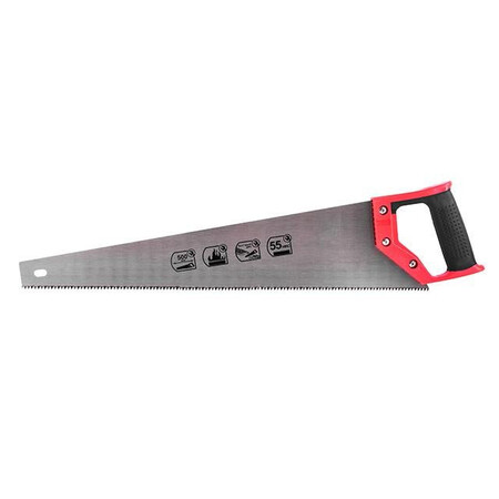 Ножівка по дереву виготовлена із міцної загартованої сталі. Довжина робочої поверхні – 500 мм, цього цілком достатньо для розпилювання гілок або заготовок діаметром понад 100 мм. Кількість зубців на 1 дюйм робочої довжини полотна - 7. Зубці пили загартовані, зберігають гостроту різального краю та не потребують заточування.
