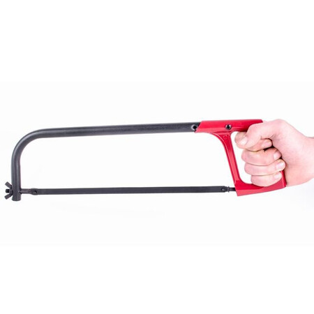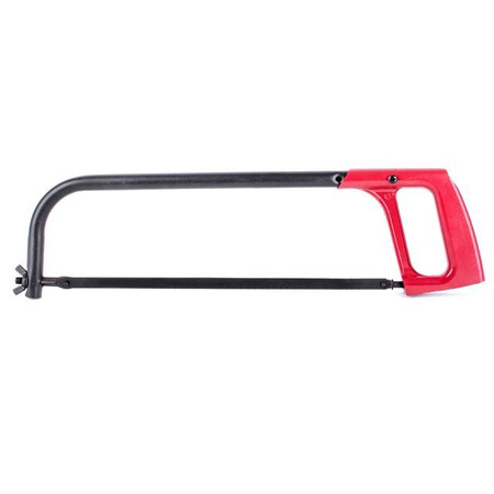 Міцна металева рамка має високу жорсткість, що забезпечує швидке розпилювання металу. Конструкція з надійним кріпленням полотна, затягується та фіксується за допомогою спеціального гайкового механізму. Встановлення полотна можливе під кутом 90°.
