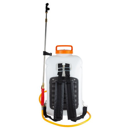 Обприскувач акумуляторний Ergo 16л FLORA (5001324) - це поливальний інвентар, зазвичай застосовується в господарстві для зрошення водою або іншою рідиною грунт. Використовують цей пристрій коли рослині потрібні поживні речовини, а джерело даних речовин відсутня. Обприскувачі призначені для обробки рослин засобами захисту, гербіцидами і рідкими добривами. Маленькі зазвичай використовуються для квітів, а великі від 3л до 15л потрібні для проведення трудомістких робіт в саду. Садові обприскувачі допоможуть не тільки позбутися від шкідників і хвороб, але і забезпечать полив квітів, що вимагають акуратного поводження.