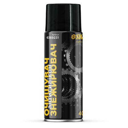 Очищувач знежирювач антисилікон 400мл SIGMA (6369231) – це універсальний засіб аерозольного типу, що слугує для усунення залишків силіконового мастила та інших видів мастил, жирової плівки, воску, мазуту тощо з різних поверхонь та деталей перед нанесенням лакофарбного та антикорозійного покриття, склеювання.