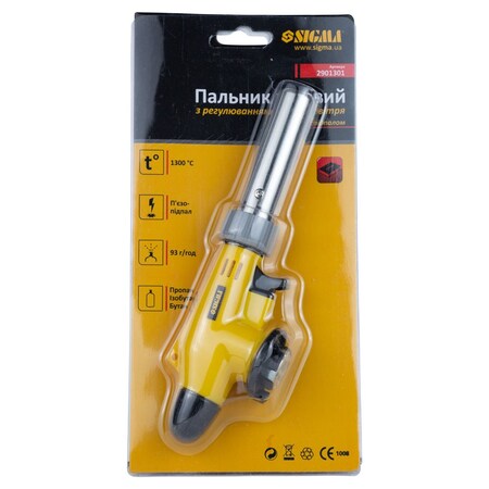 Пальник газовий турбо 360° з регулюванням подачі повітря та п'єзопідпалом Ø18мм 203мм SIGMA (2901301)