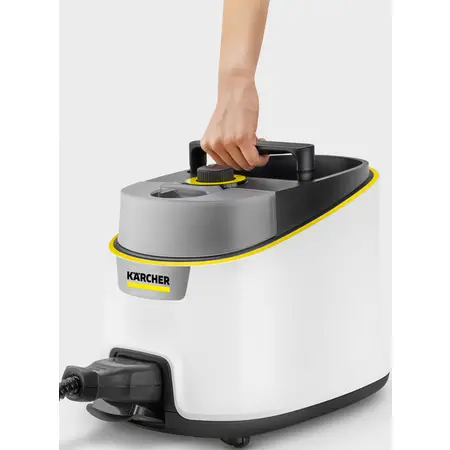 Karcher SC 4 Deluxe Iron – потужний пароочисник із тиском 4,0 бар. Знищує 99,99% вірусів і бактерій, ефективно очищує тверді поверхні, кухонні плити, витяжки, плиткові шви. Знімний бачок дозволяє поповнювати воду без перерв. Оснащений вбудованим відсіком для приладдя, світлодіодним індикатором, 3-ступінчастим регулятором пари та ергономічною насадкою EasyFix із липучковим кріпленням серветки. У комплекті парова праска, що скорочує час прасування до 50%.