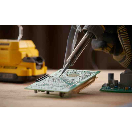 Акумуляторна система V20 18В; Діапазон температур 204°C - 482°C; Довжина шнура живлення 120 см; Діаметр паяльного жала 6.35 мм (1/4″); Вага 0.47 кг