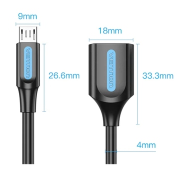 Перехідник USB 2.0 Micro BM до USB AF (OTG) довжиною 0.15 метра від бренду Vention - це ідеальний аксесуар для підключення вашого мобільного пристрою до зовнішніх пристроїв. Виготовлений з високоякісного чорного PVC матеріалу, цей перехідник є надійним, міцним і довговічним.<br><br>Завдяки стандарту USB 2.0 Micro BM та USB AF (OTG), ви зможете легко і швидко підключити смартфон або планшет до зовнішнього накопичувача, клавіатури, миші або будь-яких інших пристроїв з підтримкою USB. Цей перехідник дозволяє проводити обмін даними і забезпечує стабільне підключення пристроїв.<br><br>Зручний у використанні і компактний у розмірах, перехідник USB 2.0 Micro BM до USB AF (OTG) від Vention є ідеальним рішенням для тих, хто цінує якість і ефективність в кожному аксесуарі.