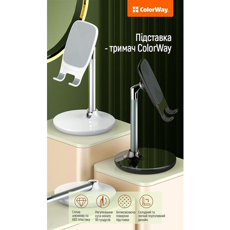 Підставка-тримач ColorWay для смартфона і планшета White (CW-SH013-WT) є практичним і універсальним. Ідеально підійде для перегляду відео, фільмів, рецептів і читання книг в зручному для Вас положенні.