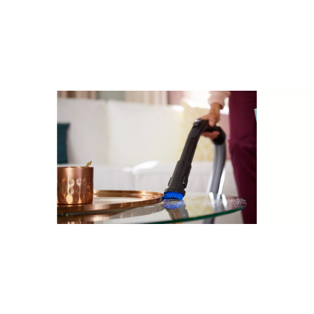 Щітка для пилу вбудована в ручку, тому при необхідності очищення меблів та оббивки вона завжди буде під рукою.