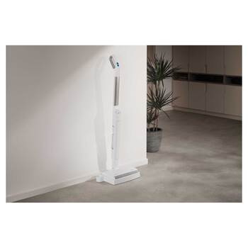 Конструкція дозволяє прибирати максимально близько до стін та меблів. Горизонтальне положення корпусу забезпечує доступ під низькі поверхні. Легка вага 2,8 кг полегшує маневрування.