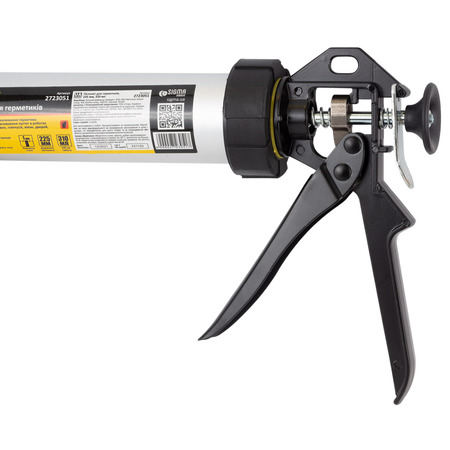Пістолет для герметиків 225мм 310мл (алюмінієва туба) SIGMA (2723051) застосовується для видавлювання герметика при ізоляції, фіксації та заповнення пустот в роботах по монтажу ванн, раковин, плінтусів, вікон, дверей, дзеркал, плитки і т.д.
