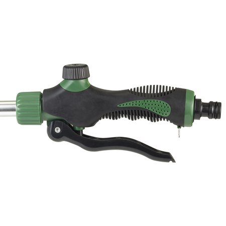 Пістолет-розпилювач 9 режимів з подовжувачем 700мм поворотний (пластиковий) GRAD (5012355) застосовується для поливу рослин, квітів і овочів в важкодоступних і віддалених місцях. Двокомпонентна рукоятка виконана з ударостійкого міцного пластику з гумовим покриттям, має поглиблення під пальці рук для зручності надійного захоплення і комфорту при роботі з інструментом.