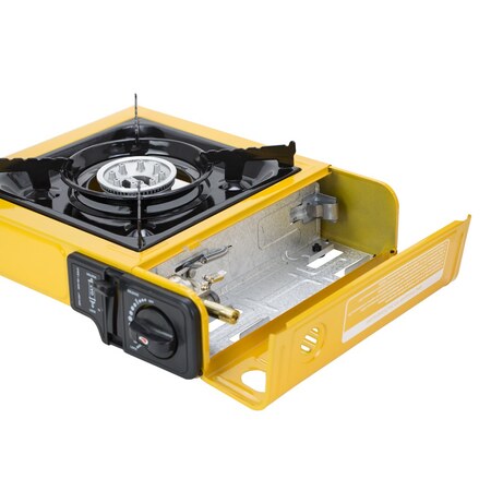 Модель має одну конфорку, потужність якої становить 2.8 кВт. Дана плитка гарантує комфортне приготування їжі в будь-якому місці. Крім того, пристрій безпечний в експлуатації. Конструкція надійна і продумана, тому газовий балон встановлюється всередині самої плити. Модель економічна у використанні. У плитці встановлений регулятор потужності, що також забезпечує особливий комфорт. Модель має п’єзопідпал, який спрацьовує при будь-яких зовнішніх умовах. Паливо необхідне для роботи плити - пропан або бутан (цанговий газовий балон 220г) або багаторазові балони ємністю 5 л, 27л і 50л через адаптер.