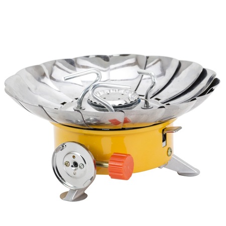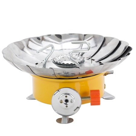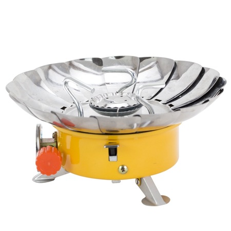 Укомплектована пелюсткової захистом від вітру. В якості палива застосовуються одноразові газові балони.