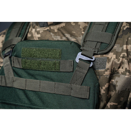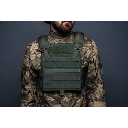 Хороший бронежилет – невід'ємна частина військового спорядження. Перебування на лінії вогню без захисту тягне за собою значну небезпеку, тому про броню необхідно подбати кожному бійцю. Головним елементом бронежилету є металеві пластини. Однак, для їх встановлення необхідний корпус із тканини. Плитоноска «Темна олива» виконана у класичних бойових кольорах. Крім основного призначення, вона оснащена низкою інших корисних функцій. Наприклад, ручка на спині допомагає евакуювати бійця із поля бою. Розмір зручно регулюється бічними ременями та плечовими лямками. Для кращої фіксації плит використовують клапани. Зібраний жилет дозволяє пережити попадання по корпусу кулі або уламка, тому значення такого екіпірування складно переоцінити.