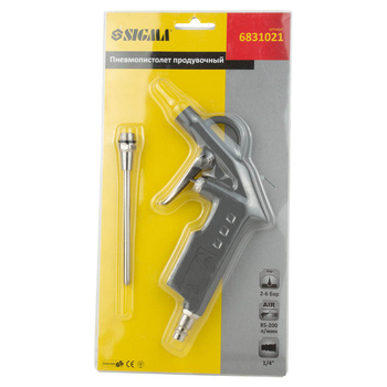 Пневмопистолет продувочний подовжений SIGMA (6831021) - професійний інструмент за допомогою стиснутого повітря швидко здує пил і бруд. Ергономічна і зручна рукоятка і малу вагу пневмоінструменту забезпечать максимальний комфорт при тривалій і ємною роботі.