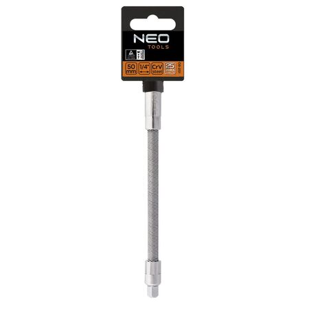 Подовжувач гнучкий Neo Tools розміром 1/4", довжиною 140 мм і виготовлений з хром-ванадієвої сталі (CrV) - це інструмент, який дозволяє легко дістати інструмент в труднодоступних місцях, де важко працювати звичайними торцевими головками або ключами. Хром-ванадієва сталь забезпечує міцність, довговічність та високу стійкість до корозії. Цей гнучкий подовжувач є незамінним інструментом для різноманітних робіт в гаражі, майстерні або на будівництві.