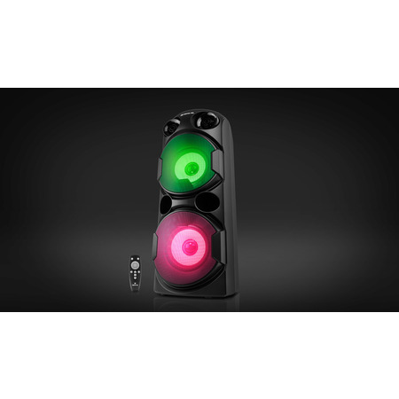 Ця колонка також має два мікрофонні входи з регулюванням гучності та ефектом луна, що робить її чудовим варіантом для караоке, ведення заходів або голосових анонсів. Керування колонкою можна виконувати як вручну, так і за допомогою пульта дистанційного керування.