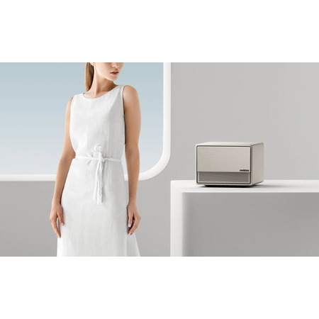 XGIMI HORIZON Ultra можна купити тільки в нейтральному бежевому кольорі. Акуратне виконання з використанням штучної шкіри, тканини та алюмінію прикрасить будь-який інтер’єр.
