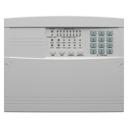 Кількість шлейфів пожежної сигналізації: 8; Напруга в шлейфі у черговому режимі: 11 - 12,5 В; Опір шлейфу сигналізації, не більше: 250 Ом; Час реакції зони на тривогу, не більше: 0,4 с; Потужність споживання від електромережі, не більше: 30 ВА; Струм споживання від мережі, не більше: 0,12 А; Струм споживання від АКБ, не більше (режим спокою): 170 мА; Струм споживання від АКБ, не більше (режим тривоги): 230 мА; Місце під АКБ 7 А*г; Електроживлення: 220В (-15%,+10%), 50±1 Гц; Навантаження по виходу DET та +12В, не більше: 0,5 А; Величина струму через контакти SIR, не більше: 5 А; Діапазон робочих температур при експлуатації: -5°С до +40°С; Габаритні розміри: 281х226х85 мм