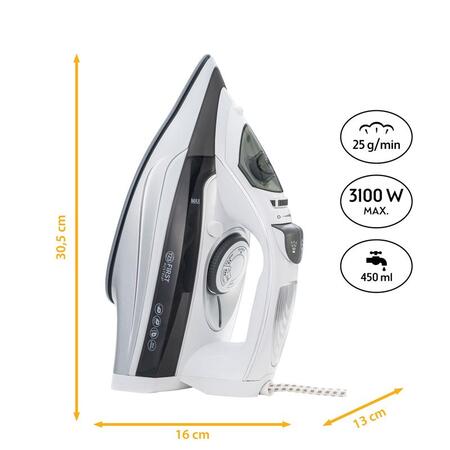 Бездротова праска значно полегшує роботу по дому. Від’єднавши її від базової станції, можна гладити без кабелю і абсолютно вільно. Базова станція нагріває праску, і вона готова до прасування протягом кількох секунд. Час повторного нагрівання між процесами нагрівання становить лише кілька секунд. Праска має резервуар для води на 450 мл. За допомогою ергономічно зручної кнопки подачі пари можна встановити наступні налаштування: безперервна подача пари ВИМК., безперервна подача пари СЕРЕДНЯ, безперервна подача пари МАКС (30 г/хв). Крім того, можна використовувати кнопку розпилення води на верхній частині.