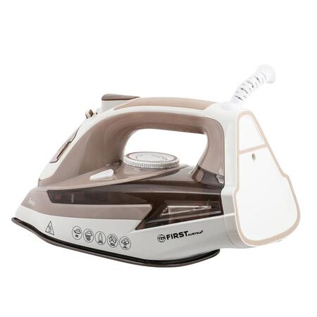 Праска First FA-5628-8 - це функціональний пристрій для прасування одягу. Вона зроблена з урахуванням зручності використання, тому оснащена масою ергономічних деталей. Рукоять виконана таким чином, щоб ви могли активно маневрувати праскою на площині. В цілому дизайн пристрою досить лаконічний і нейтральний: класичний форм-фактор, базова колірогама, символи і позначення функцій безпосередньо на корпусі. Заливний отвір резервуара для води має щільну кришку і досить великий діаметр.