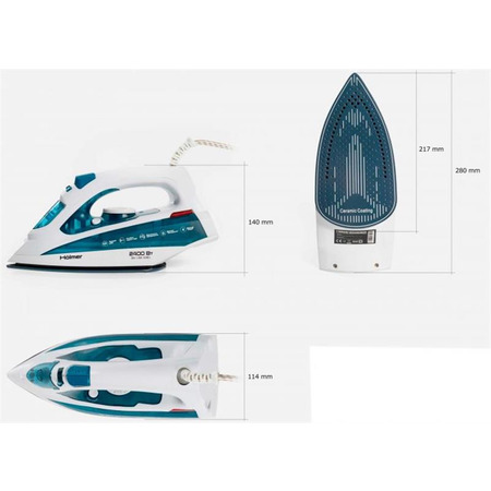 Праска Holmer HIC-2430 для сухого прасування і з парою, має потужність 2400 Вт (час нагріву max ~32 сек), паровий удар 120 г/хв, постійну подачу пари 30 г/хв. Керамічне покриття підошви забезпечує легке ковзання по тканинах різних типів, розгладжуючи навіть найскладніші ділянки.