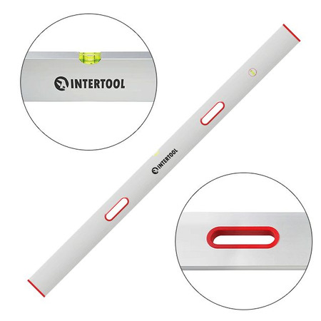 Виготовлене правило з міцного алюмінієвого профілю, дуже легке. Алюміній не боїться вологи, не набухає та не деформується, при цьому має малу вагу. Правило має збільшену міцність та стійкість до зносу, а також не схильне до вигинів корпусу. Два бульбашкові рівні захищені від ударів, з точністю вимірювання - 0,5 мм/м.