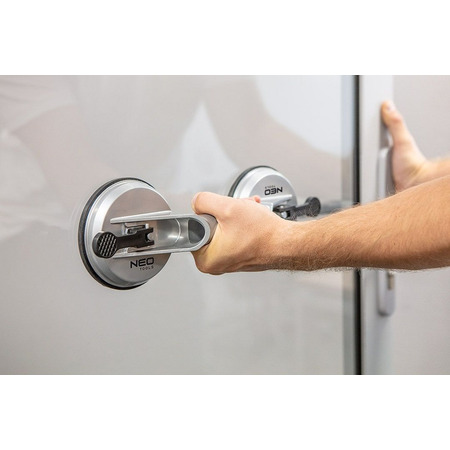 Присоска вакуумна Neo Tools для скла з алюмінієвим корпусом, діаметром 120 мм та вантажопідйомністю 100 кг є надійним та зручним інструментом для роботи з великими, важкими або скляними об'єктами. Вона може бути корисною для професіоналів у галузі будівництва, ремонту чи скловаріння, а також для домашнього використання.